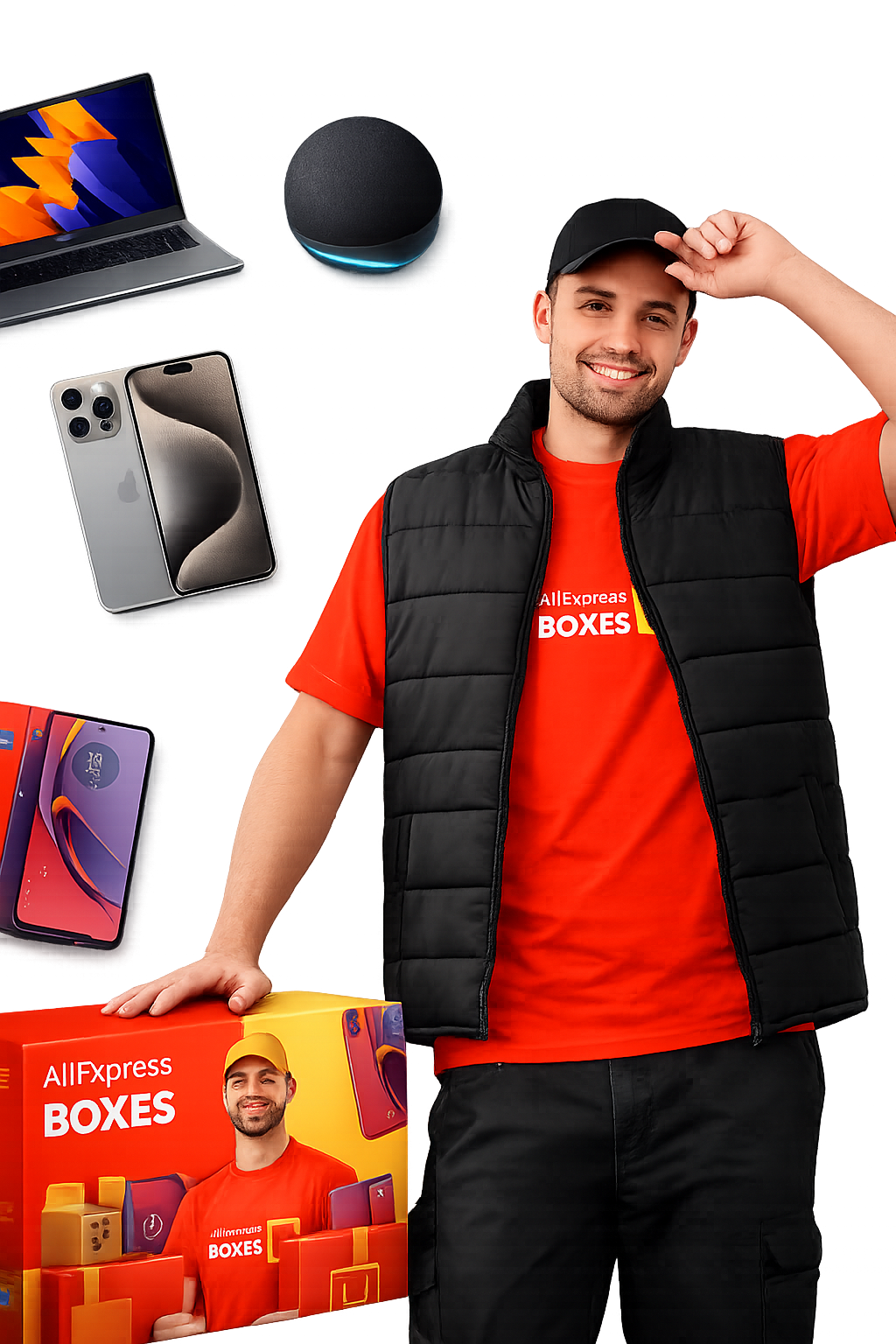 O programa AliExpress Boxes disponibiliza em caixas fechadas os milhares de produtos devolvidos diariamente para nossos estoques.
